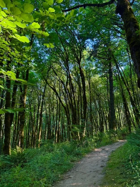 The area surrounding where I live was heavily logged about a century ago. It makes me sad to imagine all the giant trees that used to be here. The forests feel like they are still in recovery when I walk through them. But it is amazing to see the resilience of plant life, and it’s always a gift to breathe in their abundant oxygen. Oh, and the little purple wild flowers all along the trail? Asters. I love them.