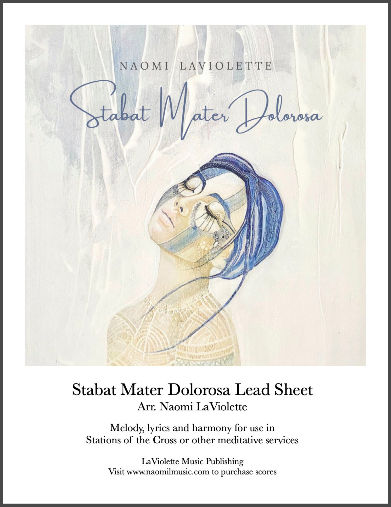 Lead sheet only, with varying chordal accompaniment to the 15 different verses of the Stabat Mater Dolorosa chant, as heard in the Rising Violet (Naomi’s sacred music) recording. Originally conceived to be a meditative and unique musical enhancement to a traditional Stations of the Cross service.