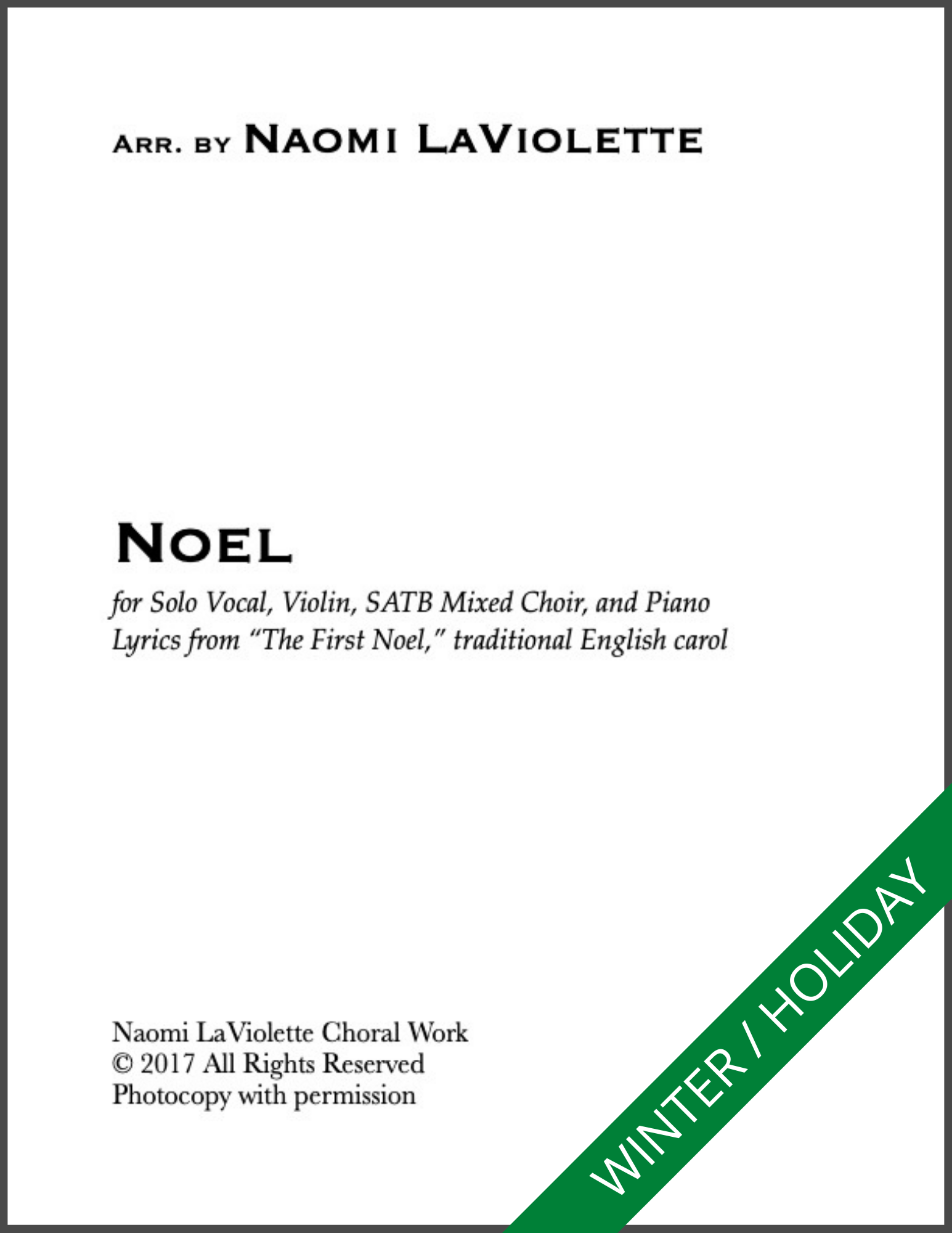 “Naomi LaViolette’s Noel was a joy to program and perform. It was well-crafted and extremely satisfying for both the choir and the audience. I highly recommend this talented and versatile composer.”