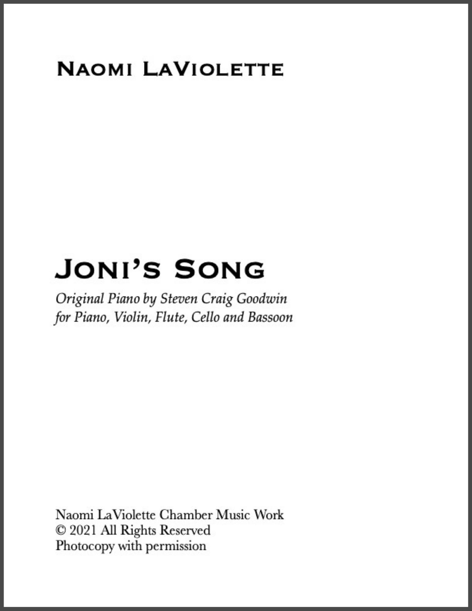”Joni’s Song” Instrumental Ensemble: Piano, Violin, Cello, Flute, Bassoon